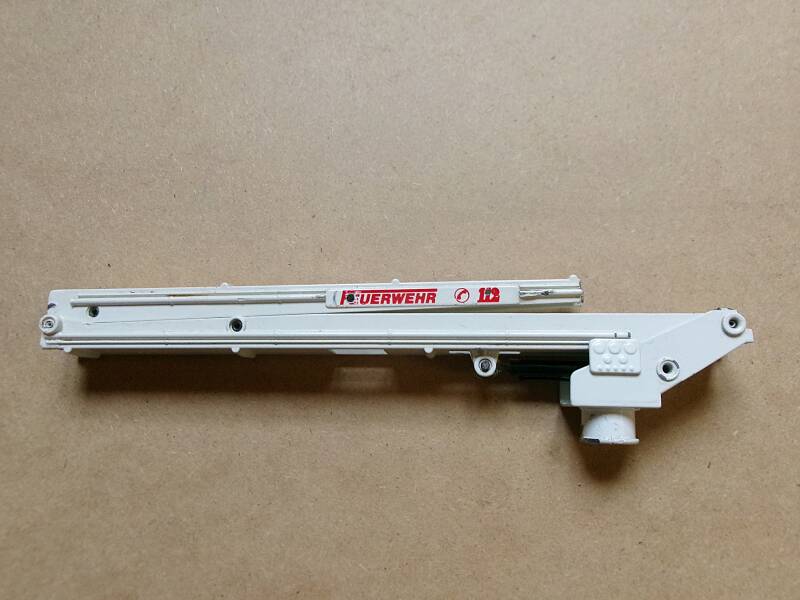 Dat begin van de giek wil ik gaan verlengen met de giek van deze oude Siku brandweerwagen, deze wordt dan bevestigd door middel van de voet op de Liebherr-onderwagen. De delen zijn net iets dikker dan die van de Putzmeistergiek, dus dat komt mooi uit.