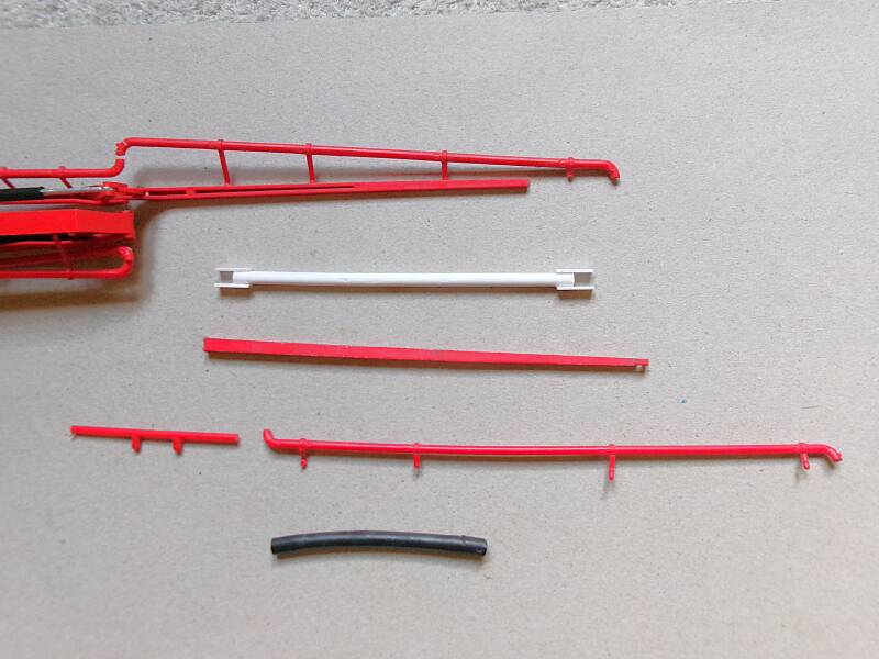 Dit zijn de buizen voor langs de brandweergiek later. Het staafje is rood gemaakt en het bochtje met slang is ook klaar.