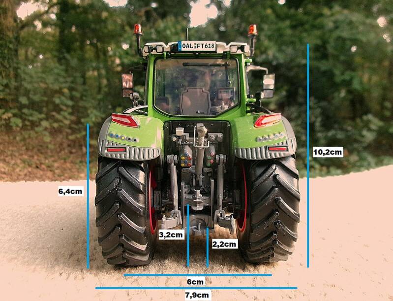 Enkele afmetingen van het model. Deze is in schaal 1:32, dus 1cm van het model is 32cm in het echt.
