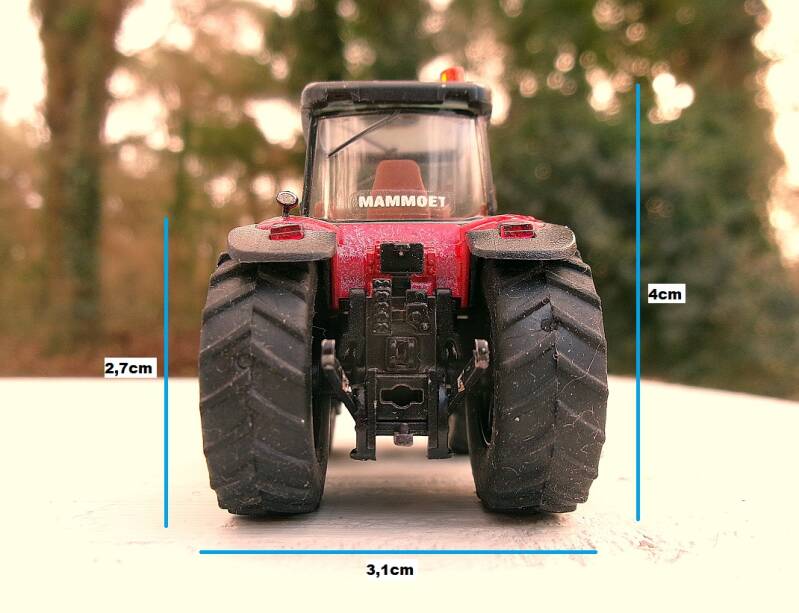 Enkele afmetingen van de trekker. Deze is in schaal 1:87, dus 1cm van het model is 87cm in het echt.