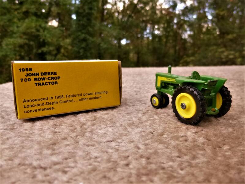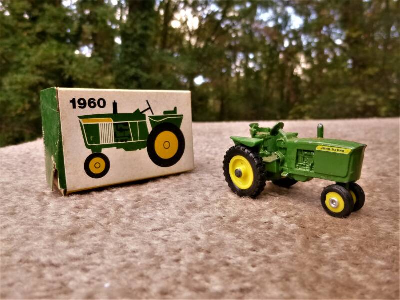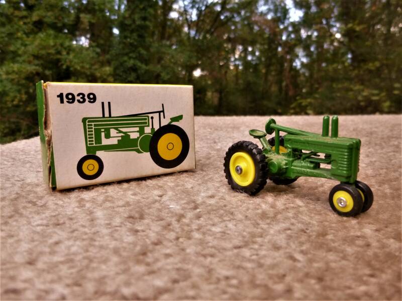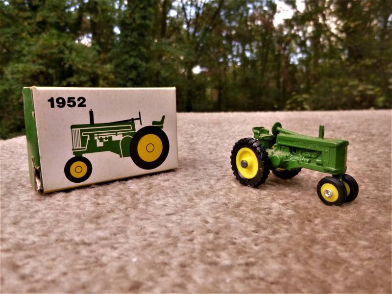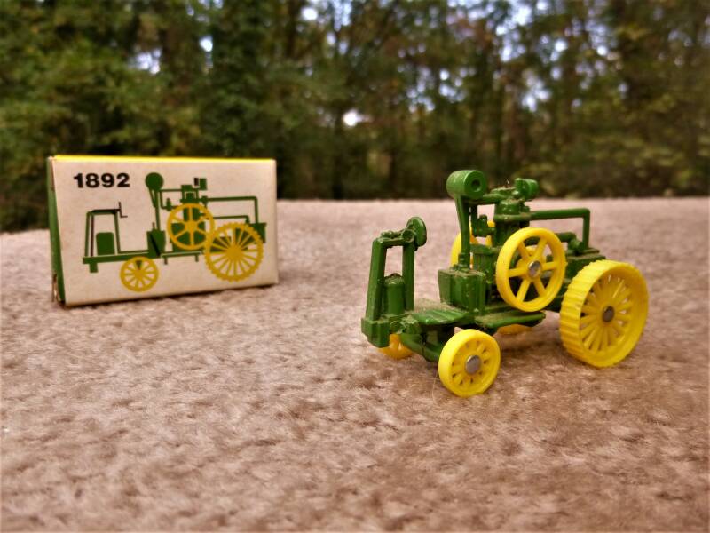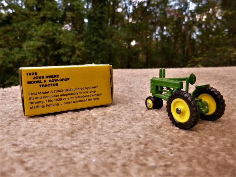 Dit is een setje met acht John Deere tractors bij elkaar(schaal onbekend, maar ik denk 1:64, fabrikant Ertl). Iedere tractor zit apart in een doosje en vertegenwoordigt een bepaalde bouwperiode. Op het doosje staat vermeld in welke tijd deze tractor is ontwikkeld en geproduceerd, soms ook met info over de motor. Het is dus een mooie weergave van de geschiedenis van John Deere tractoren tot 1973. Ik heb het setje lang geleden van iemand gekregen en ik vind het wel leuk om ook deze op mijn site te plaatsen.