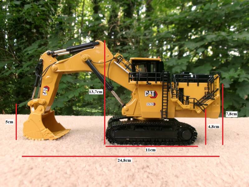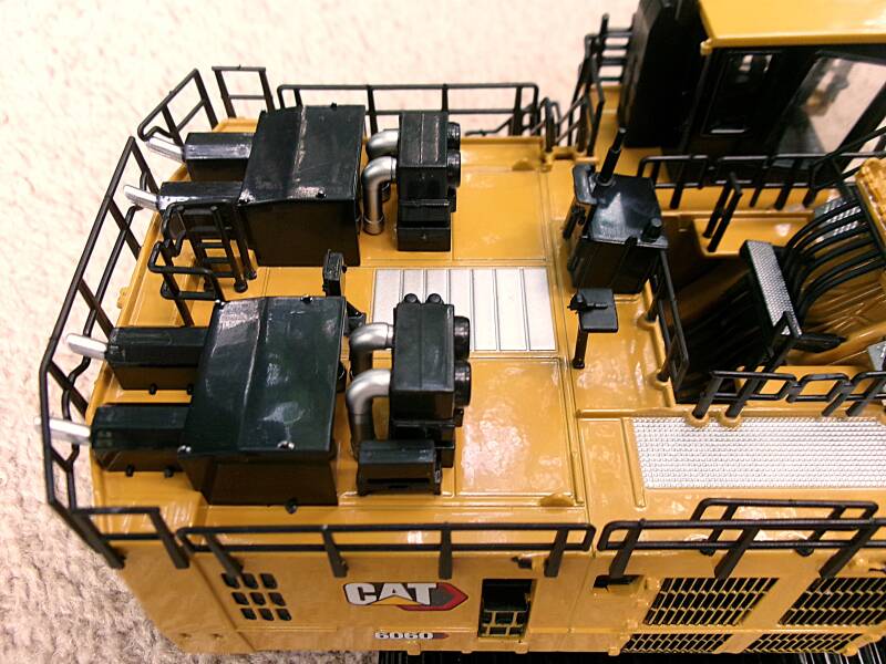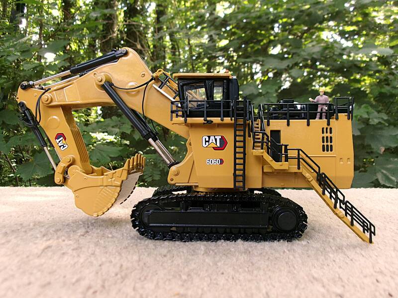 Caterpillar 6060 hydraulische mijnbouwgraafmachine in de dieplepeluitvoering(schaal 1:87, fabrikant Diecast Masters). Dit 600ton wegende gevaarte is ook als miniatuurmodel zeer imposant.