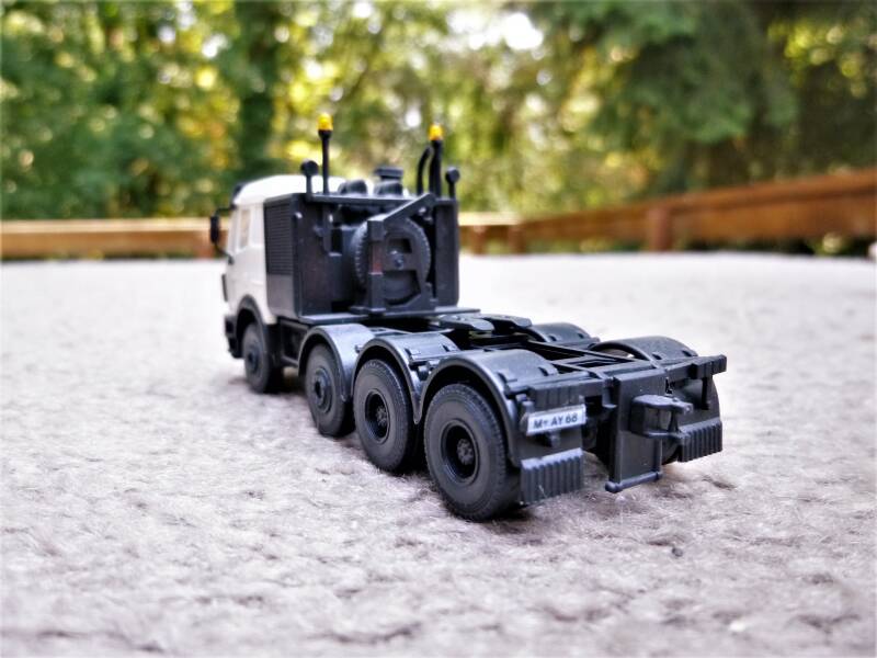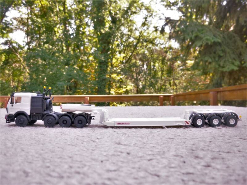 Mercedes-Benz SK 8x4 trekker met Scheuerle 3-assige dieplader(schaal 1:87, bouwpakket, fabrikant Kibri).