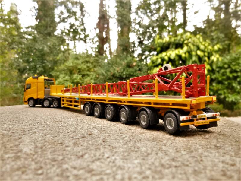 Voor de bouw van deze jib(=verleng-of hulpgiek) heb ik de Liebherr LT1120 aangeschaft en is bestemd voor de Liebherr LTM1300-6.2. Deze jib is de enige in deze grootte, passend voor de 300 tons kraan die in schaal 1:87 (icm met de kraan dus)wordt aangeboden in de webshop(winkel). Voor de LTM1300-6.2 is dus geen hulpgiek te koop, daarom ben ik maar weer zelf aan de slag gegaan.