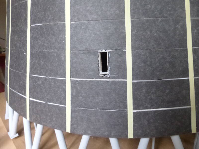 De top van de toren moest verstevigd worden, want die was veel te slap. Ik heb de hele cirkel dus voorzien van een extra kartonnen rand.