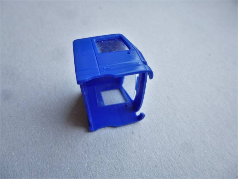 Op het interieur wordt de 'glazen' binnenkant gelijmd. Dit geheel moet daarna in de binnenkant van de cabine worden geschoven. Toen ik dat had gedaan kwam ik er achter dat de beglazing flink was beschadigd. Ik vond het wel vreemd, want ik had de delen toch echt mooi recht op elkaar gelijmd. Na te kijken waar dat aan kon liggen denk ik dat het (deels) aan de ruitenwissers ligt, waarschijnlijk liggen ze door een fabrieksfoutje te ver naar binnen.