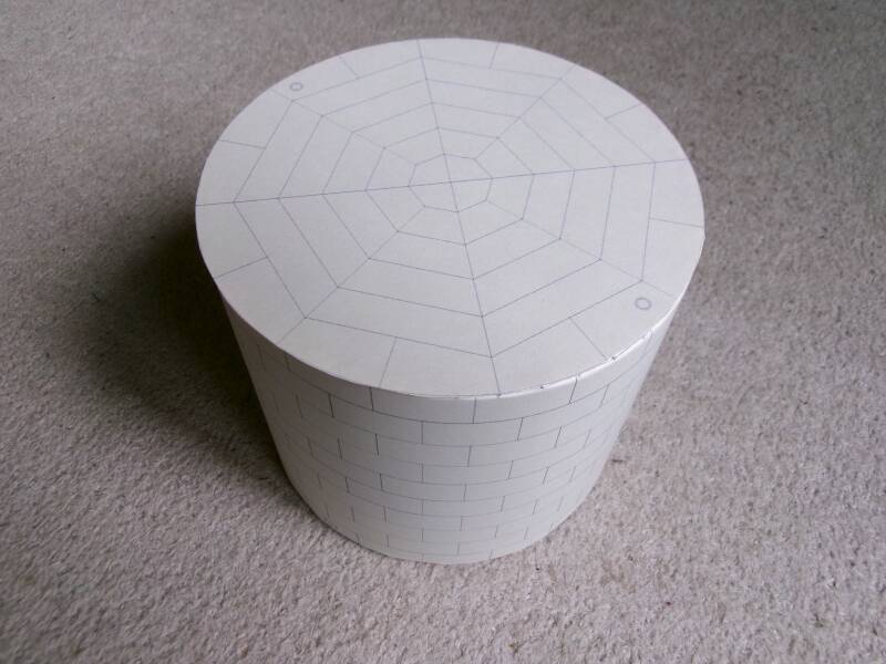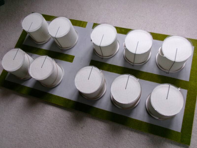 De keuze is dus gevallen op zo'n papieren opslagtank, waarvan ik er uiteindelijk 10 gemaakt heb. Het papier dat ik gebruikt heb is 160 g/m2, mooi stevig papier. Hieronder het bouwverslag.