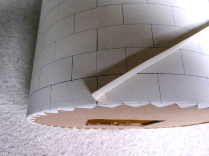 Aan de onder- en bovenzijde heb ik hem vastgelijmd na hem mooi om de wand te hebben gekruld.