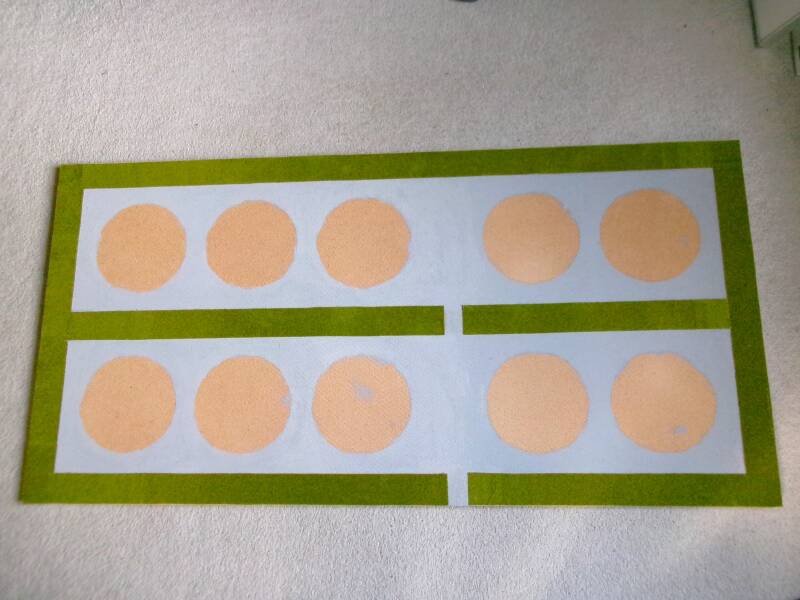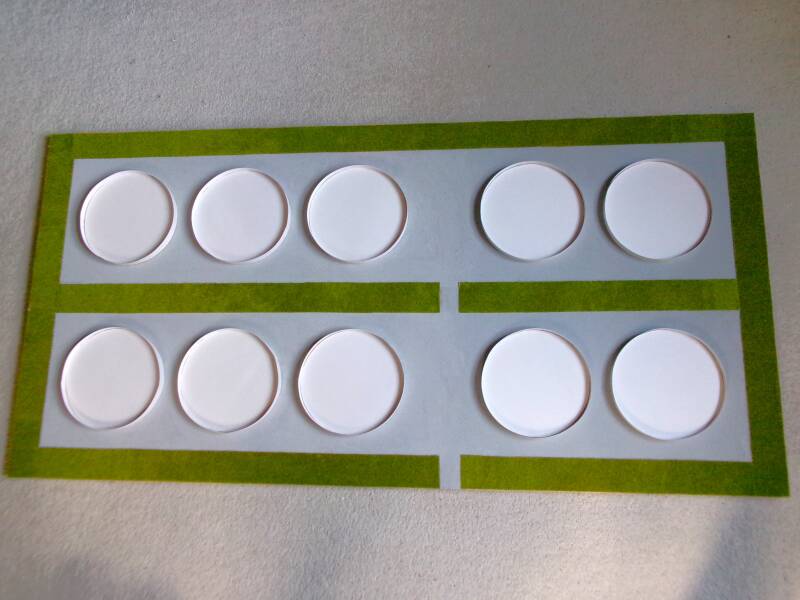 In de schijf aan de onderzijde heb ik een gat geknipt, je kunt hem dan mooi 'sturen", zodat hij precies goed op de plek komt zitten.